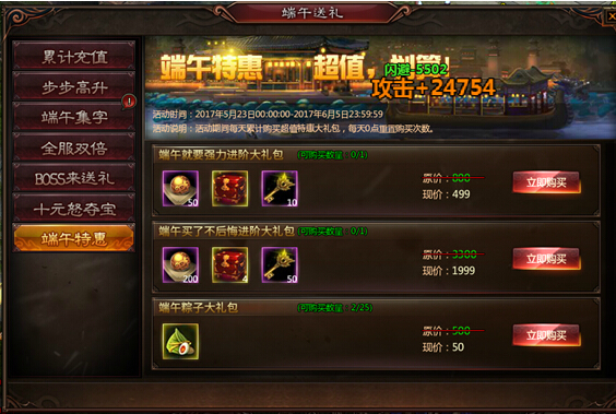 活动规则:活动期间每天都可以购买限购特惠礼包